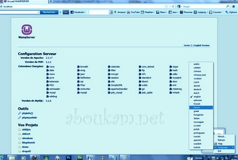 Les Menus de l’Icône Wampserver