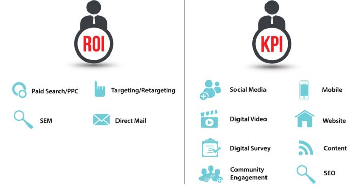 Quelle est la différence que vous demandez? Le suivi du retour sur investissement et des indicateurs de performance clés est lié à différentes initiatives marketing, comme indiqué dans le tableau ci-dessus.